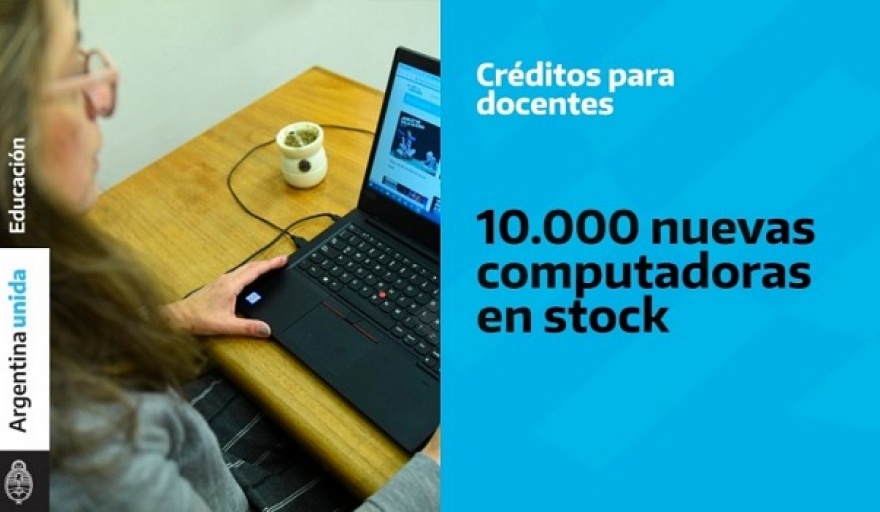 El Ministerio de Educación de la Nación, junto con el Banco Nación y el Ministerio de Desarrollo Productivo, anunciaron la extensión de la línea de créditos “Programa PC Docentes” con el aporte de 10 mil nuevas computadoras, para que las y los docentes de educación obligatoria y superior no universitaria que perciben el FONID puedan acceder a equipamiento informático en planes de largo alcance y con una tasa muy inferior a la de mercado. Se irá sumando nuevo stock a medida que el sector productivo electrónico pueda renovar la oferta de equipamiento.