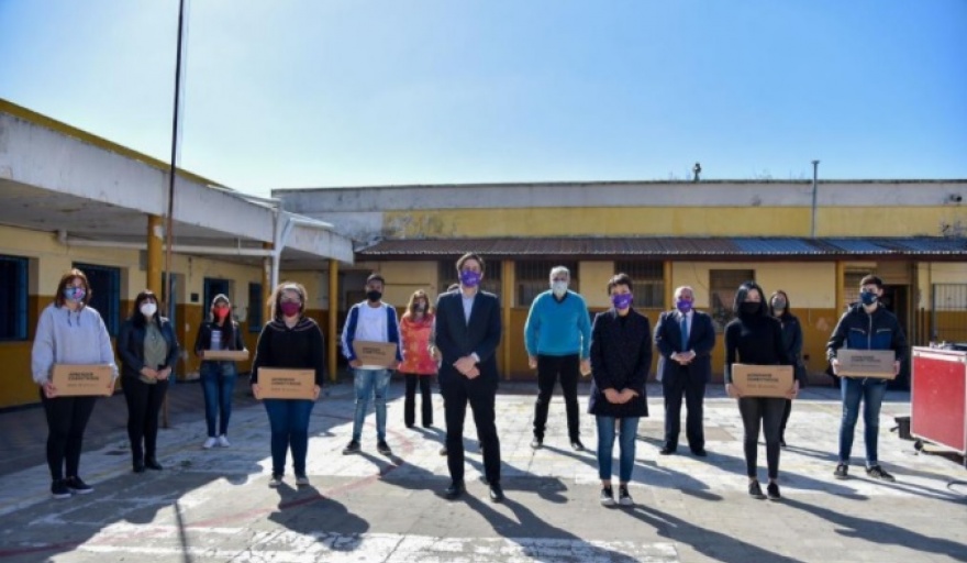 La intendenta de Quilmes, Mayra Mendoza, encabezó junto al ministro de Educación de la Nación, Nicolás Trotta la entrega de 51 netbooks a los estudiantes de 4to año de la EES N° 52 de Bernal Oeste, en el marco del Plan de Conectividad Nacional “Juana Manso”; en simultáneo, a través de una conexión vía Zoom, se llevó a cabo un acto donde se otorgaron otras 132 netbooks a la EES N° 1 “Joaquín. V. González” de Don Bosco. Luego, los funcionarios recorrieron las obras realizadas en la escuela.