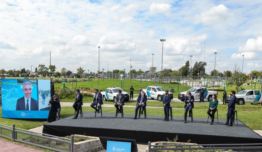 Durante el acto el Gobierno nacional entregó además 60 móviles para fortalecer la seguridad en el Municipio de Merlo, con una inversión de 176 millones de pesos.