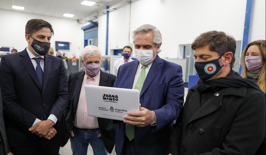 “Ponemos en marcha este plan para llevarle a chicos y chicas el acceso a internet para que puedan conocer, estudiar y conectarse, y lo hacemos produciendo estas computadoras en ocho empresas argentinas que nos van a dar casi 700 mil notebooks al cabo de este año, exactamente el mismo número que se distribuyeron los últimos cuatro años”, afirmó Fernández durante el acto que compartió en la planta de BGH junto al ministro de Educación, Nicolás Trotta; el gobernador de la provincia de Buenos Aires, Axel Kicillof; el intendente local, Alejandro Granados; el director accionista de BGH, Diego Teubal; y el CEO del grupo, Marcelo Girotti.