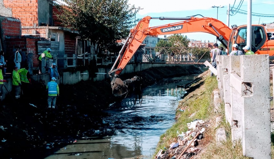 A su vez, con camiones, bateas y maquinaria pesada, continuaron los trabajos de limpieza del arroyo Las Piedras en todos sus cruces de San Francisco Solano desde la calle 850. Lo mismo ocurrió en el arroyo San Francisco en su intersección con la calle 172, de Bernal Oeste.