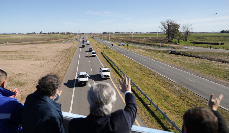 "La obra pública es conectar a la Argentina, es acercar pueblos, es mejorar el transporte y facilitar la labor de quien produce", afirmó el Jefe de Estado, quien estuvo acompañado por el gobernador Axel Kicillof; el ministro de Obras Públicas, Gabriel Katopodis; y el administrador general de Vialidad Nacional, Gustavo Arrieta, los intendentes de los municipios que recorre la traza y otras autoridades.