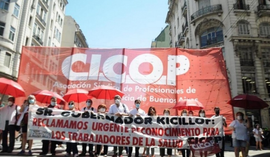 Esta mañana, pasadas las 10 horas, los médicos y médicas enrolados en Asociación Sindical de Profesionales de la Salud de la Provincia de Buenos Aires (CICOP), se movilizan a la Casa de Gobierno de la provincia en reclamo de “reconocimiento salarial, actualización de nombramientos y mayor aplicación de los decretos de desgaste laboral”.