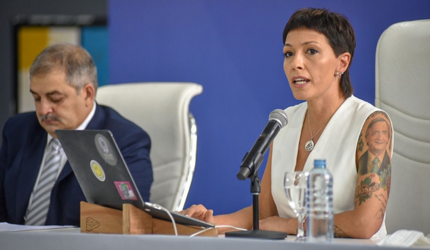 "Estamos transformando Quilmes, con más obras y más trabajo que nunca", afirmó Mayra durante su discurso al frente de los concejales y concejales quilmeños, en un encuentro que trasladó el recinto del HCD a la sede de la Escuela Educación Técnica Nº 3 "República de Italia", ubicada en la avenida José A. López (844) Nº 2135, de San Francisco Solano.