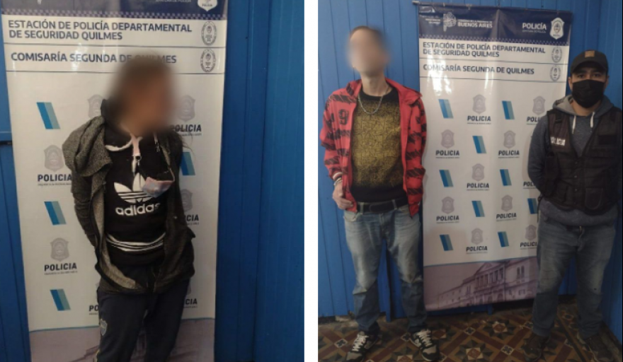 Tras un operativo cerrojo la pareja delictiva fue detenida en el cruce de Belgrano y Misiones (Bernal). Uno de los capturados, de 41 años de edad, ingresó a trabajar en la Policía Local de Quilmes en el año 2015 y recientemente había sido trasladado a una seccional de Avellaneda, donde se desempañaba actualmente. Tras requisarlos, encontraron entre sus pertenencias el arma reglamentaria otorgada por el Ministerio de Seguridad de la Provincia con las municiones, una réplica de un arma de fuego y elementos sustraídos a las víctimas (mochilas, ropa, teléfonos celulares, dinero en efectivo y hasta planillas correspondientes al Censo).