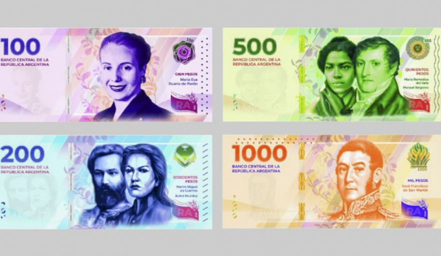 La nueva familia de billetes de la República Argentina que, se espera, estarán en circulación antes de que finalice el año, se compone de cuatro denominaciones (100, 200, 500 y 1.000 pesos), con la representación de tres mujeres y tres varones, informó el Banco Central (BCRA).