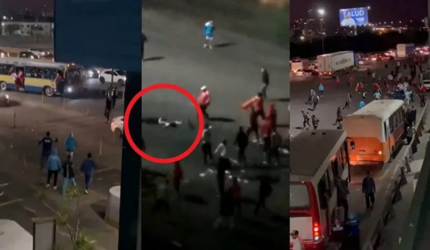 Los hombres identificados con la casaca albiceleste apedrearon vehículos, ante lo cual los hinchas del Millonario se bajaron a pelear. Durante la pelea se ve a una persona con un buzo blanco, que cae noqueada por un objeto que le da de lleno en el rostro, y que es arrastrado por sus pares de River.