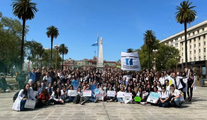 "Reclamos por un aumento salarial que sea acordé a la inflación país. Un residente de primer año actualmente cobra $280 la hora, es un salario de aproximadamente $110.000 pesos mensuales por más de 100 horas de trabajo semanales", explicó Aldana.