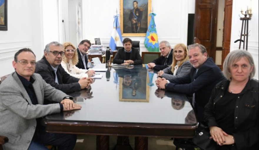 El gobernador Axel Kicillof encabezó ayer una reunión con el ministro de Educación de la Nación, Jaime Perczyk, y el director general de Cultura y Educación, Alberto Sileoni, en la que se suscribió un convenio para ampliar la jornada educativa en escuelas primarias de gestión estatal de la provincia de Buenos Aires.