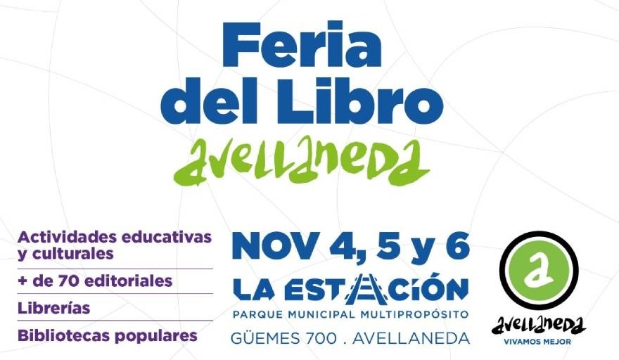 El Municipio de Avellaneda presenta un nuevo evento para este fin de semana. En esta ocasión, se trata de la "Feria del Libro Avellaneda". El viernes 4 de noviembre, día de la inauguración, se podrá visitar desde las 10:00 hasta las 20:00 hs en el Parque La Estación, ubicado en Güemes 700, con entrada libre y gratuita. Luego, tanto el sábado 5 como el domingo 6, los horarios serán desde las 12:00 hasta las 21:00.