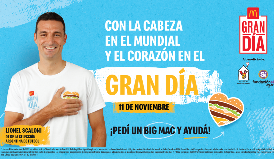 Este viernes 11 de noviembre vuelve el Gran Día, la jornada solidaria más importante del año para McDonald's donde el 100% de lo recaudado por la venta del sándwich Big Mac en todo el país será donado a Fundación Sí y a Casa Ronald.