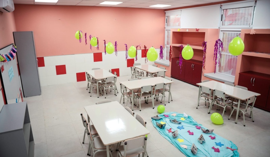 Gracias a una inversión de más de $108 millones, el nuevo edificio cuenta con dos aulas para niñxs de dos años, una de lactantes y otra de deambuladores completamente equipadas para su uso. También se construyeron dos patios, salón de usos múltiples, cocina, dirección y sanitarios.