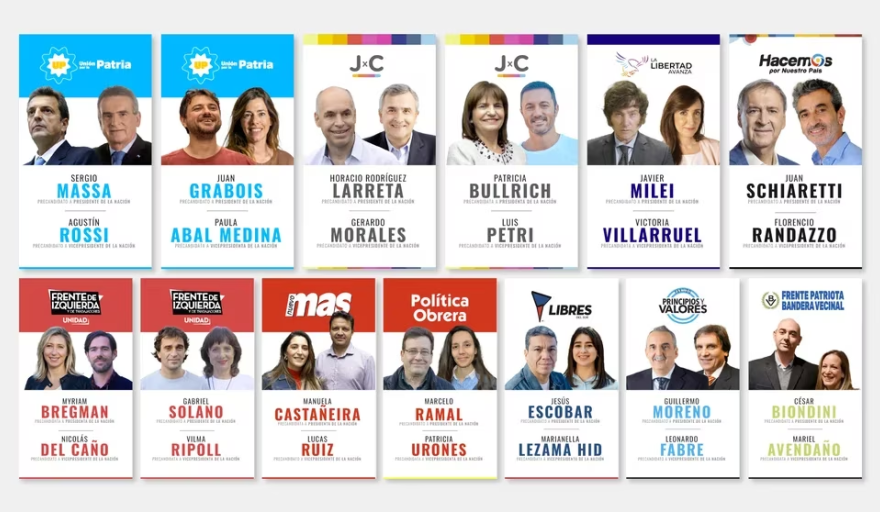 A diferencia de lo que ocurrió en las primarias del 2019, cuando no hubo más de un precandidato al Ejecutivo por coalición, en esta oportunidad las principales alianzas electorales, Unión por la Patria (UxP), Juntos por el Cambio (JxC) y el Frente de Izquierda y los Trabajadores-Unidad (FIT-U) dirimirán el domingo 13 su fórmula presidencial.