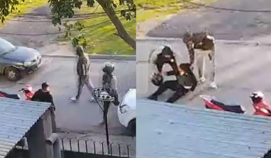 La victima debió ser asistida por el personal de salud a causa del fuerte golpe que sufrió en la cabeza. El hecho ocurrió en Pitágoras al 2700, Gerli, luego de haber pactado la compra por las redes sociales. Mirá el video.