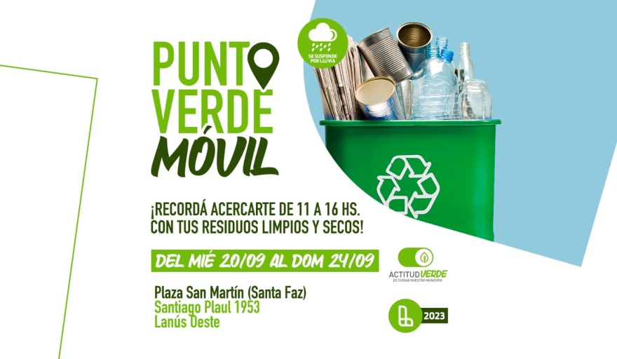 El Municipio de Lanús continúa con operativos del Punto Verde Móvil. En esta ocasión las jornadas se realizarán en la plaza San Martín, ubicada en Santiago Plaul 1953, Lanús Oeste.