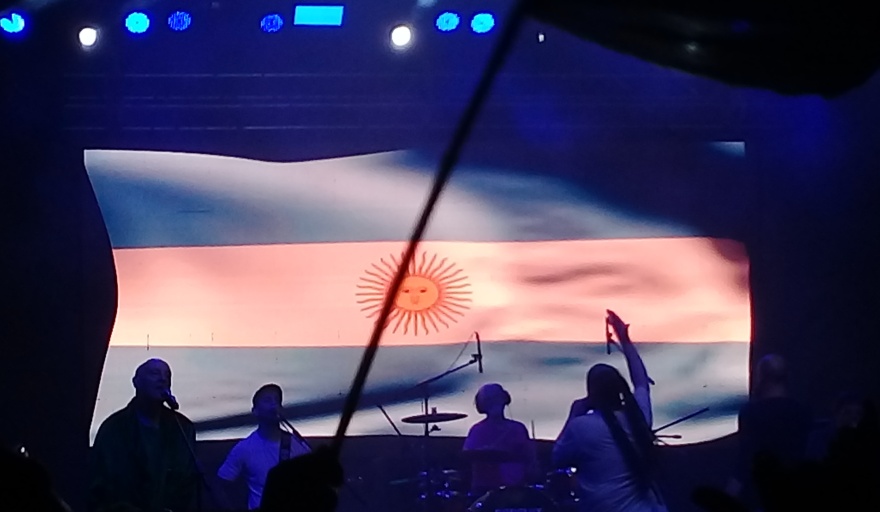 En un momento más serio de la noche, la banda interpretó su canción “Vuelos”, no sin antes la usual dedicatoria a las Madres y Abuelas de Plaza de Mayo por parte del maestro de los teclados, Juan Subirá, quien las definió como “esas mujeres maravillosas que nos devolvieron la identidad a todos, fundamentalmente a esas personas a quienes se la habían usurpado”.
