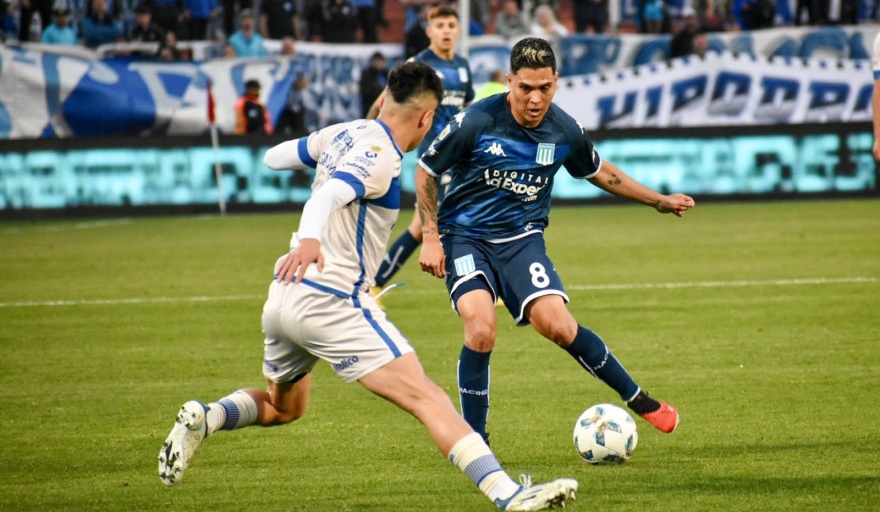 Y ahora sí, Racing iba a tomar el control del partido. La más clara que tuvo fue un remate de Nicolás Oroz que reventó el travesaño. Y a los 45 minutos, luego de una salida desde el fondo, Roger Martínez intentó un buscapié que no conectó con nadie, el arquero Diego Rodríguez especuló que alguien la iba a tocar, no sucedió, se tiró tarde y el resultado quedó igualado.