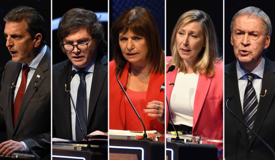 Sergio Massa (Unión por la Patria, UxP), Patricia Bullrich (Juntos por el Cambio, JxC), Javier Milei (La Libertad Avanza, LLA), Juan Schiaretti (Hacemos por Nuestro País, HNP) y Myriam Bregman (Frente de Izquierda y Trabajadores-Unidad, FIT-U) debatieron en el salón de actos de la Facultad de Derecho de la Universidad de Buenos Aires (UBA) sobre los temas "Seguridad"; "Trabajo y producción"; y "Desarrollo humano, vivienda y protección del ambiente", éste último elegido por la ciudadanía.