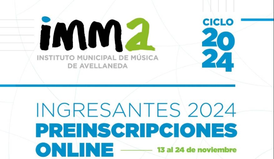 El Municipio de Avellaneda informó que se encuentra abierta la inscripción al Instituto Municipal de Música de Avellaneda (IMMA). La misma se realizará del lunes 13 al viernes 24 de noviembre a través de la web: www.imma.edu.ar