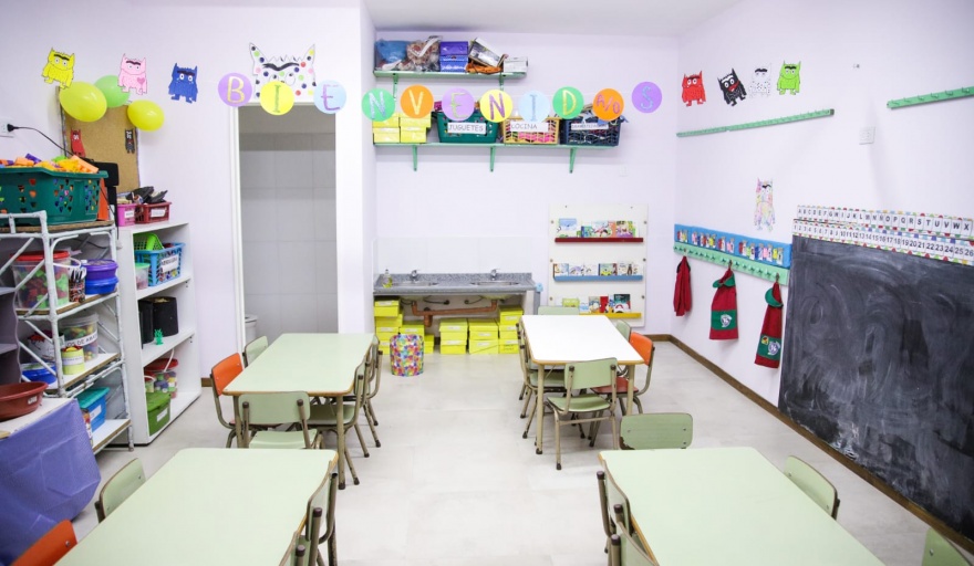Este nuevo edificio para el jardín de infantes, que anteriormente funcionaba en el Club Mitre, cuenta con tres aulas, cocina, dirección, patio descubierto para usos múltiples y un comedor compartido con el jardín maternal aledaño.