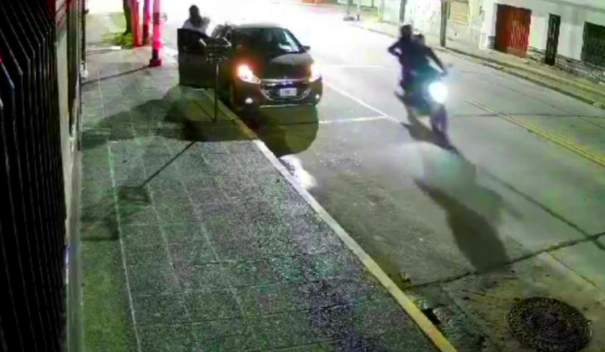 El hecho suceso ocurrió pocos minutos antes de las 20 y quedó registrado por la cámara de vigilancia instalada por un vecino. En el video se observa que el hombre estacionó el Peugeot 208 sobre la Avenida Belgrano, a metros de su domicilio, y la aparición de los criminales cuando la hija descendió del rodado.