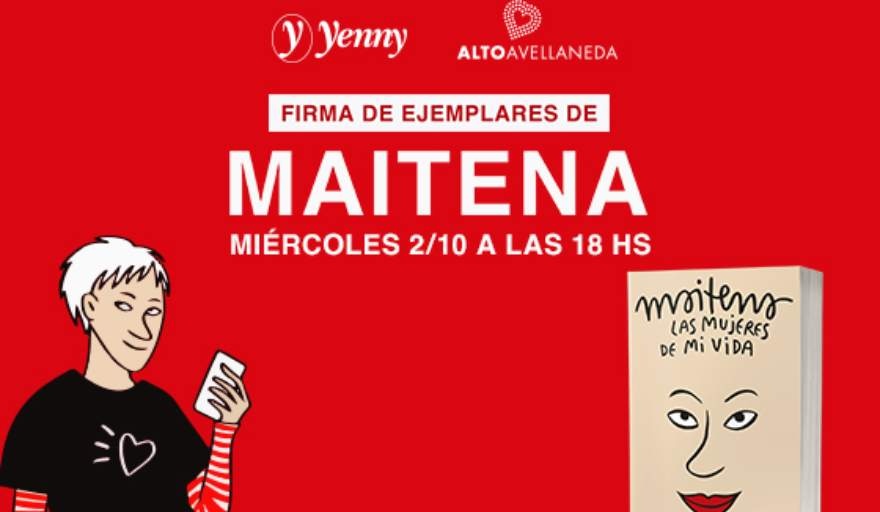 El local de Yenny, ubicado en Alto Avellaneda, será el escenario de un evento literario especial el próximo miéercoles 2 de octubre, a partir de las 18 hs. En esta ocasión, la destacada autora argentina Maitena, famosa por sus ilustraciones y sus libros que retratan con humor e inteligencia la vida cotidiana de las mujeres, se encontrará con sus lectores para firmar ejemplares de sus obras.