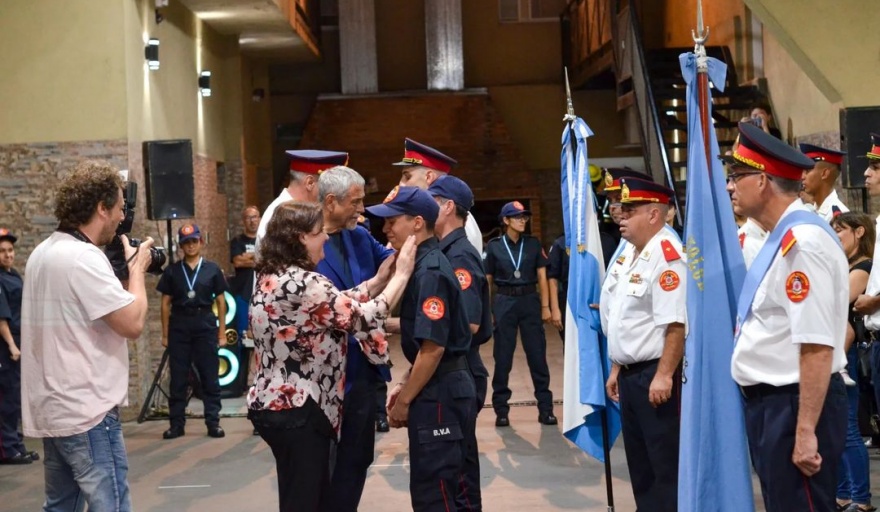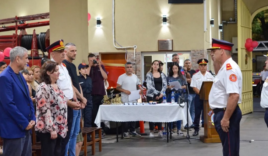 Durante el acto, la presidenta de la institución, Marcela Marchese , y el jefe del cuerpo, comandante Marcelo Barriento , tomaron juramento a la nueva camada de bomberos del año 2023. Este momento simbolizó el compromiso renovado de las nuevas generaciones con los valores de servicio. y sacrificio que caracterizan a la entidad.