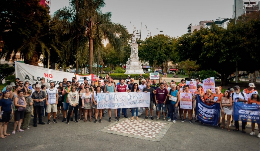 Asimismo, integrantes del Frente de Izquierda y otras organizaciones políticas se sumaron al encuentro en apoyo a los despedidos.