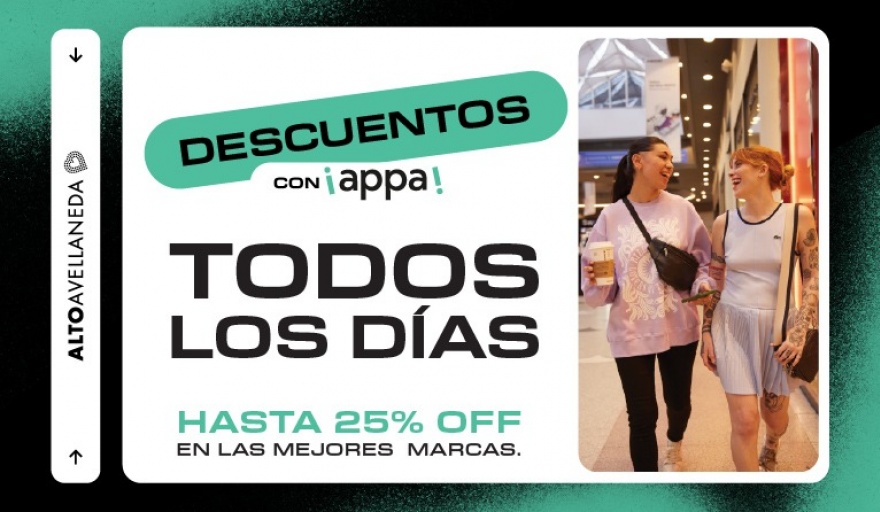 En Alto Avellaneda con ¡appa! tenes hasta 25% de descuento todos los días en las mejores marcas