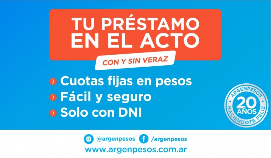 ArgenPesos, la compañía con 20 años de trayectoria en el mercado, ofrece diferentes tipos de créditos para trabajadores, jubilados y pensionados a través de sus sucursales ubicadas en el Noroeste del Conurbano Bonaerense.
