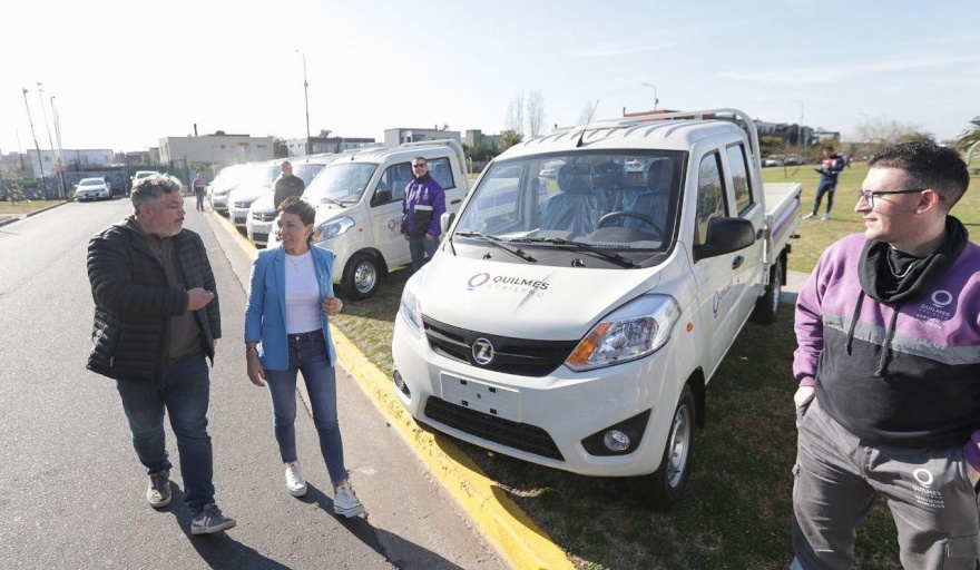 La intendenta de Quilmes, Mayra Mendoza, encabezó la presentación de 10 nuevas camionetas destinadas al traslado de personal y herramientas del área de Servicios Públicos, en un acto que se llevó adelante en el Parque Lineal de Don Bosco, ubicado sobre la avenida Caseros e Illia. Se trata de una inversión que fue realizada con el 100% de financiamiento municipal.