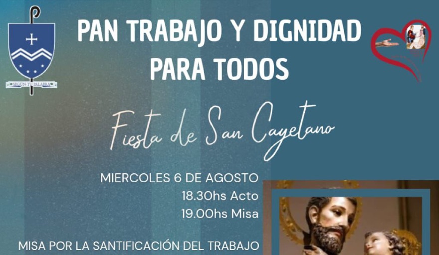 Este miércoles 6 de agosto, el Santuario San Cayetano será sede de la tradicional Fiesta de San Cayetano, bajo el lema “Pan, trabajo y dignidad para todos”. La jornada comenzará a las 18:30 con un acto y continuará a las 19:00 con la misa por la santificación del trabajo, junto a trabajadores, empresarios, sindicatos y cooperativas.