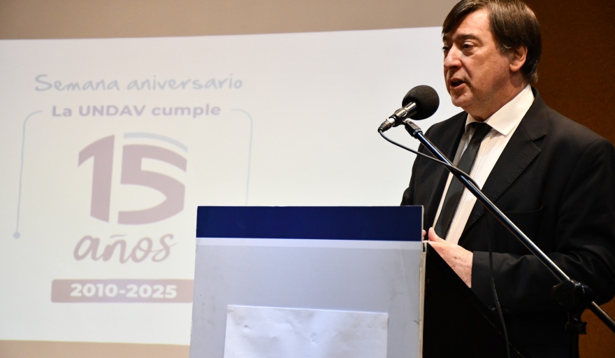 “Nacimos en un contexto de un país que apostaba a la educación, la ciencia y la tecnología. Hoy podemos decir que la UNDAV es una universidad con identidad propia, con extensión universitaria curricularizada, internacionalización inclusiva y un fuerte compromiso social”, señaló.