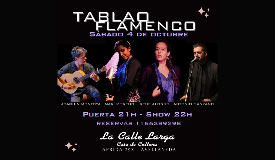 La cita está programada para las 21 en Laprida 298, Avellaneda, donde además habrá buffet a disposición del público. El evento propone una experiencia completa de música y baile al estilo del tradicional tablao andaluz.