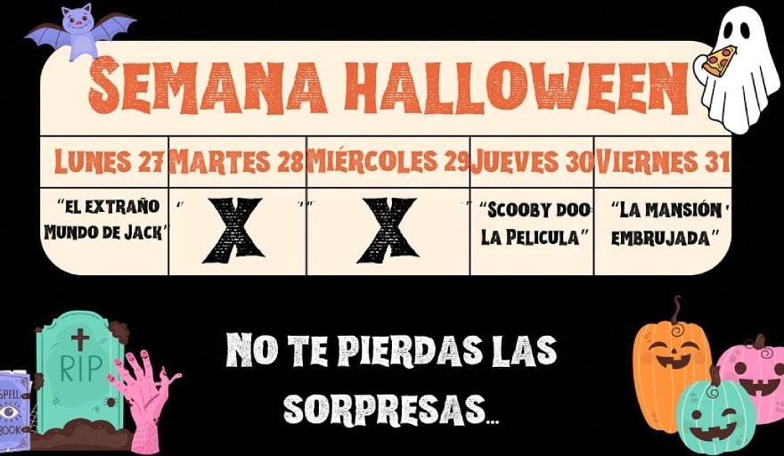 Desde el lunes 27 hasta el viernes 31 de octubre, a partir de las 20 horas, el local ofrecerá una experiencia diferente cada noche. Los comensales podrán disfrutar de sus pizzas favoritas mientras se proyectan películas de terror distintas todos los días, entre ellas clásicos como El extraño mundo de Jack, Scooby Doo: la película y La mansión embrujada.