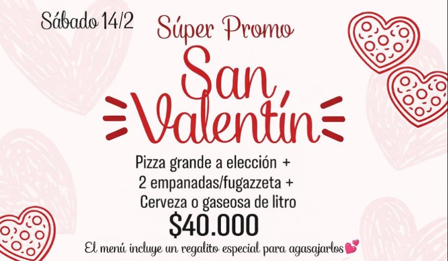 La pizzería ofrecerá este sábado 14 de febrero un menú exclusivo para parejas, con sorpresa incluida, en su local de Avellaneda Centro, en Alsina 676.