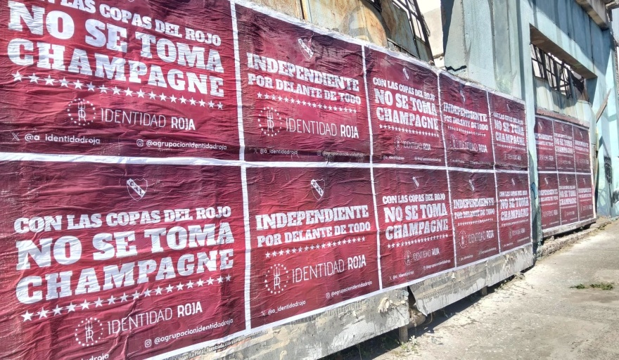 Los afiches fueron colocados en las inmediaciones del estadio Estadio Libertadores de América – Ricardo Enrique Bochini y en distintos puntos de la ciudad, llevan los mensajes “Independiente por delante de todo” y “Con las copas del Rojo no se toma champagne”, en clara alusión al actual oficialismo del club.