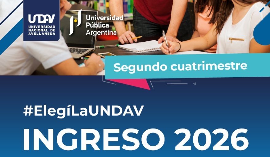 La Universidad Nacional de Avellaneda (UNDAV), a través de su Secretaría Académica, informa que se encuentra abierto el período de inscripción a carreras de grado y pregrado para el ingreso al 2° cuatrimestre de 2026. Dicho periodo concluirá el lunes 1° de junio del corriente año.