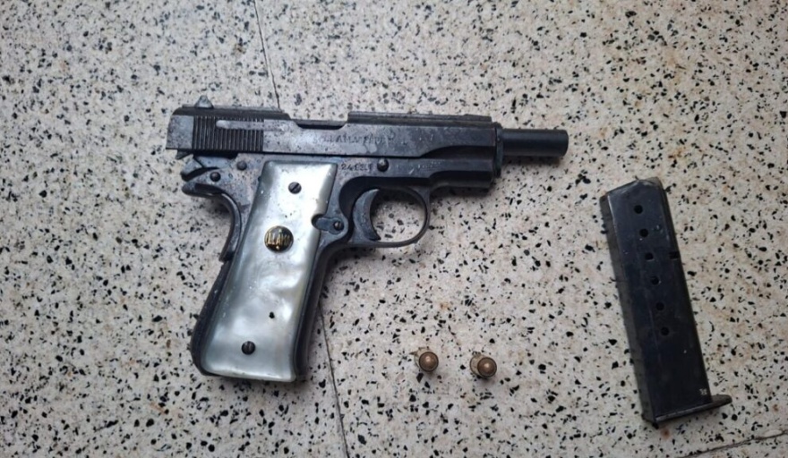 Durante el procedimiento, los agentes secuestraron una pistola marca LLAMA calibre 7.65 milímetros, con número de serie visible, y dos municiones del mismo calibre en el cargador.