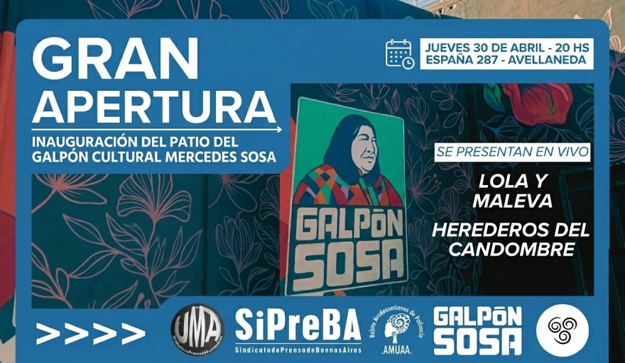 El próximo jueves 30 de abril a las 20 horas, el Galpón Cultural Mercedes Sosa abrirá las puertas de su nuevo patio, ubicado en España 287, en el centro de Avellaneda, en una jornada que combinará encuentro comunitario y espectáculos musicales en vivo.